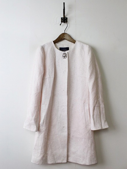 JUSGLITTY ジャスグリッティー ビジューブローチ付きノーカラーツイードコートをお買取させて頂きました。