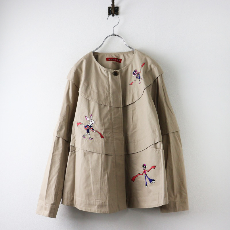 アルベロベロ オレボレブラ ALBEROBELLO OLLEBOREBLA ぶたさん&うさぎ刺繍ノーカラージャケット