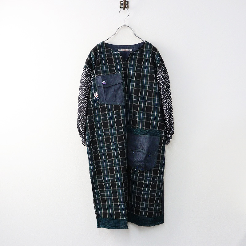 アルベロベロ オレボレブラ ALBEROBELLO OLLEBOREBLA ぶたさん刺繡 ポケット チェック切替ワンピース