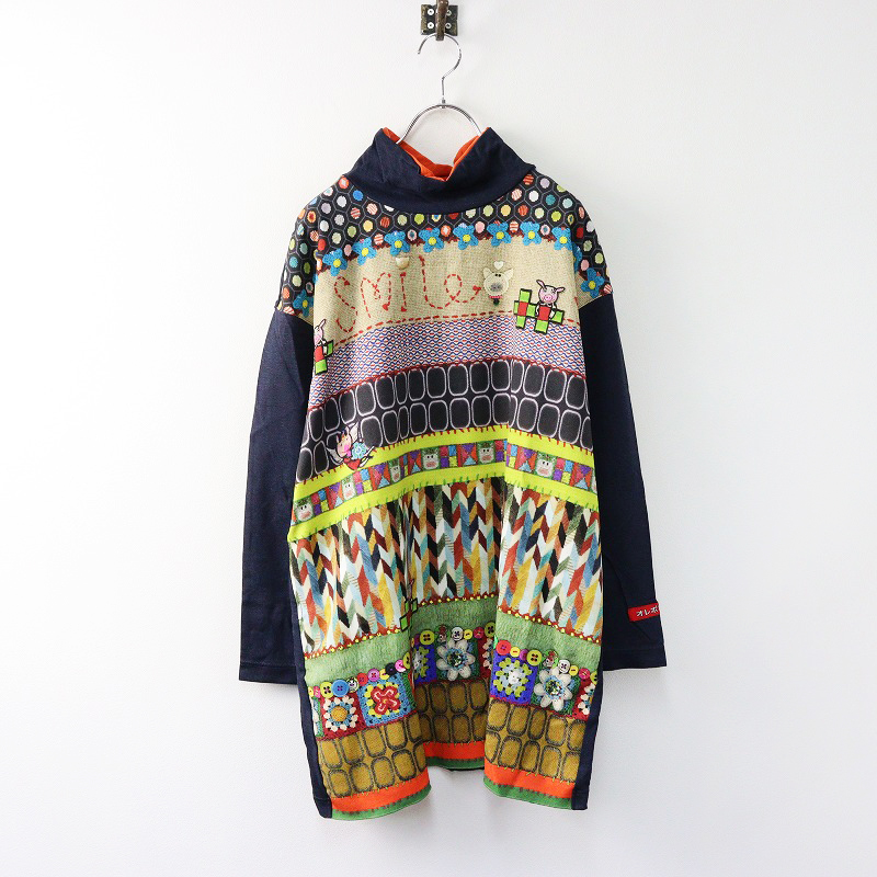 アルベロベロ オレボレブラ ALBEROBELLO ぶたさんニット転写プリント タートルネックチュニック
