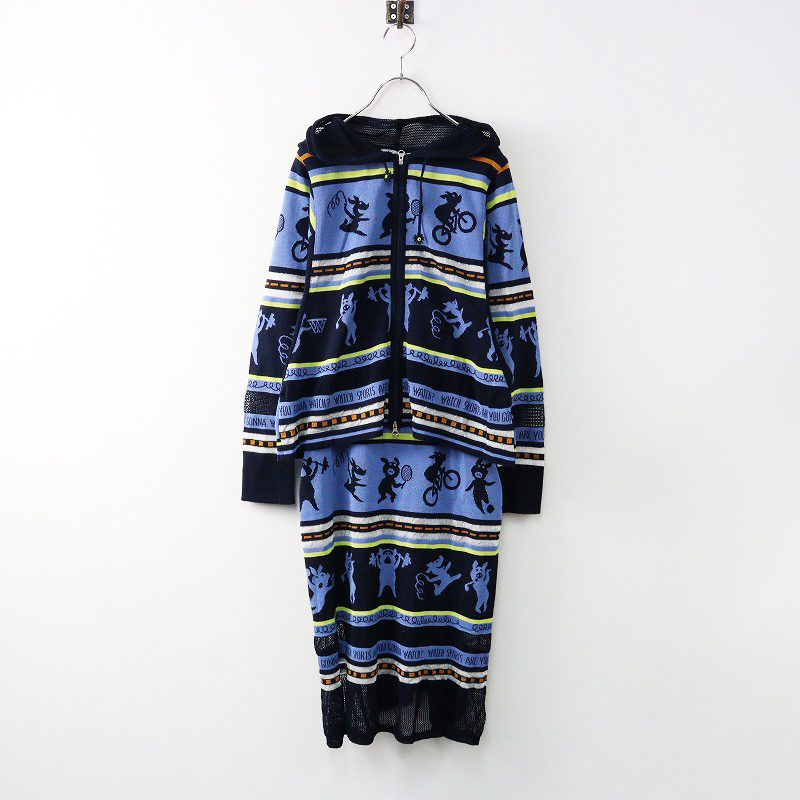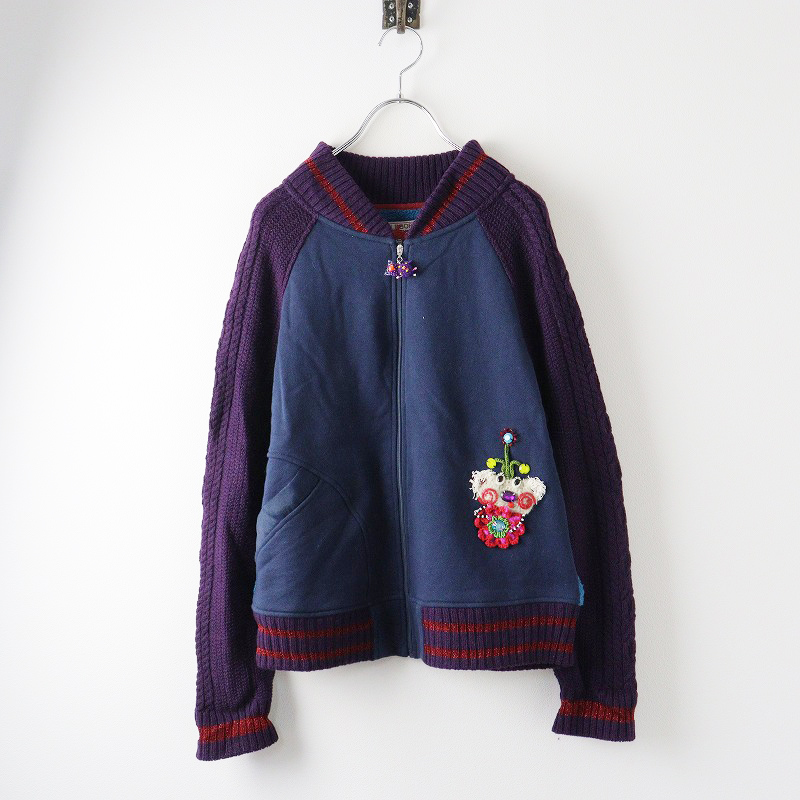 アルベロベロ オレボレブラ ALBEROBELLO OLLEBOREBLA アニマルモチーフ刺繡 ニット切替ジップブルゾン