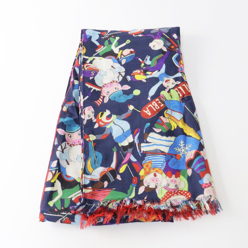 アルベロベロ オレボレブラ ALBEROBELLO OLLEBOREBLA ぶたさんプリントXチェック カシミヤ混大判ストール