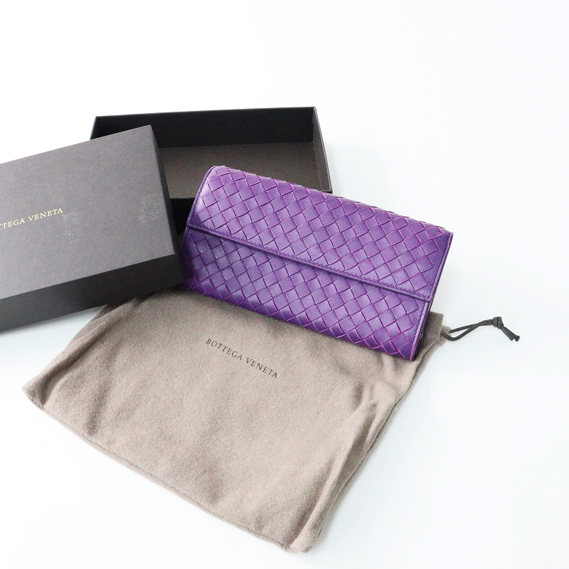 ボッテガヴェネタ BOTTEGA VENETA イントレチャート レザー フラップ ロングウォレット