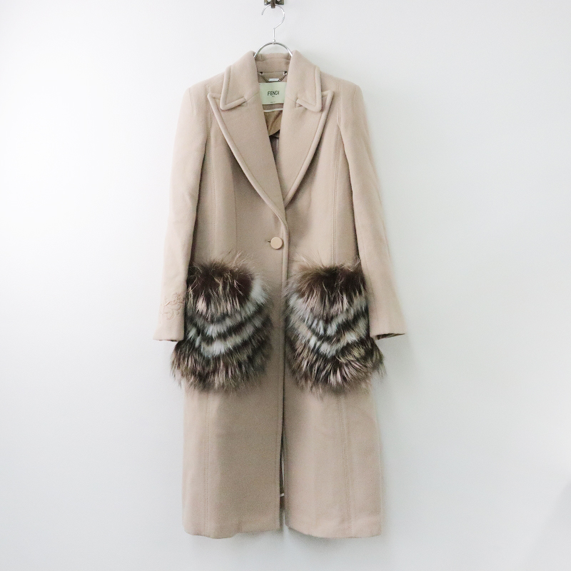 フェンディ FENDI フォックスファーポケット ラムウール ロングコート