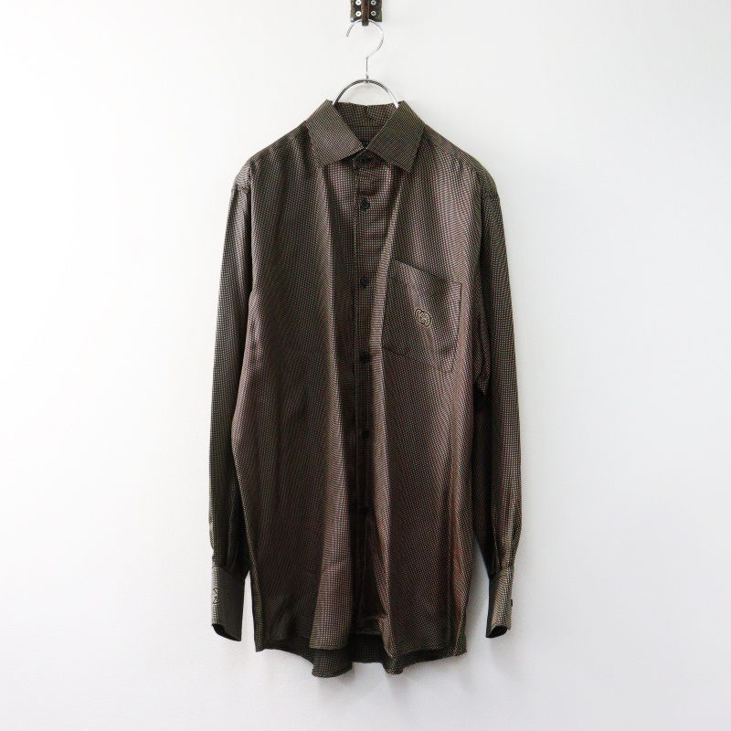 グッチ GUCCI ミケーレ期 ボタニカルプリント シルク 襟付きプルオーバーワンピース