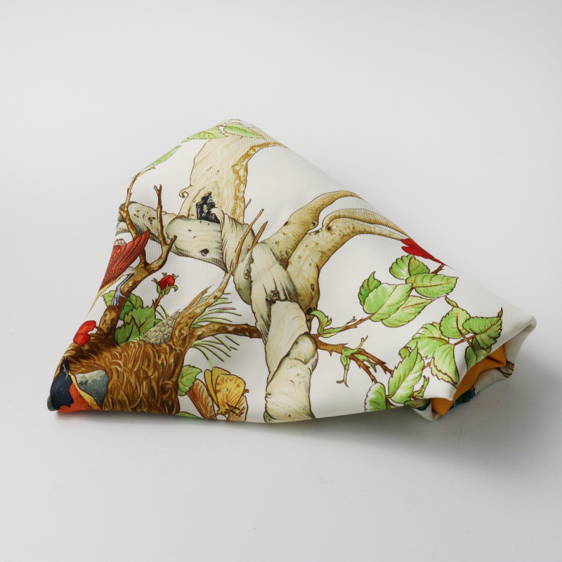 エルメス HERMES AU COEUR DES BOIS 森の中で カレ90 シルクスカーフ