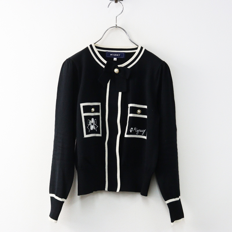 エムズグレイシー M’S GRACY パール リボン 装飾 ニットカーディガン
