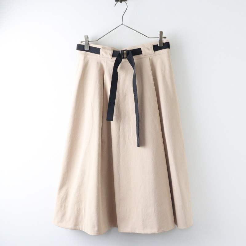 エムズグレイシー M’S GRACY ポリコットンリネン バックボタン フレアスカート グログランベルト