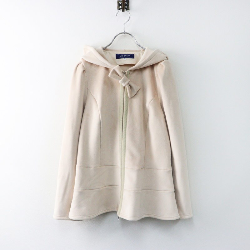エムズグレイシー M’S GRACY リボンブローチ付 ベルべットジップアップパーカー
