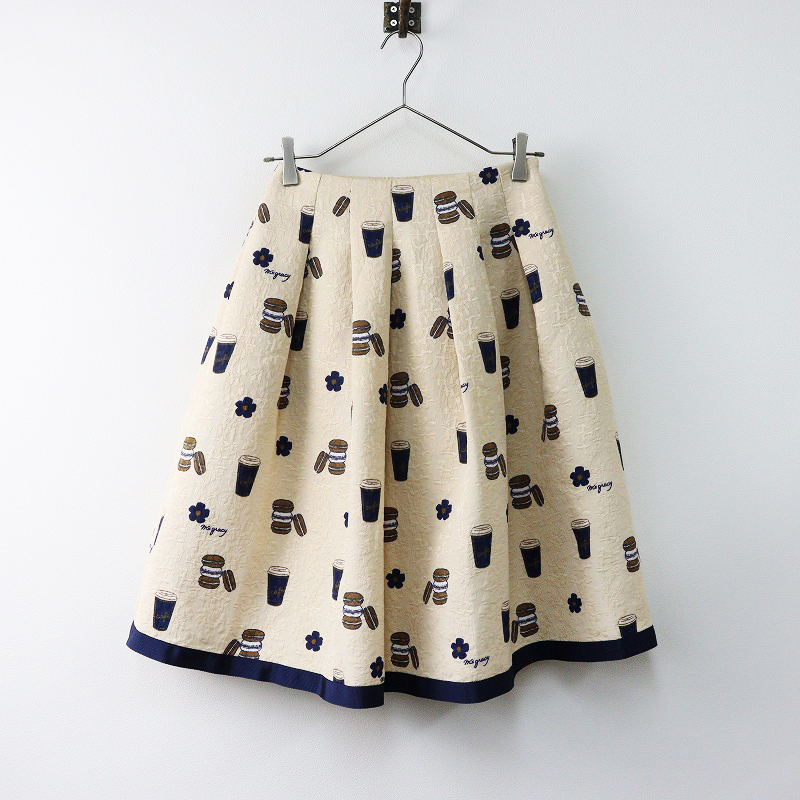 エムズグレイシー M’S GRACY マカロンxコーヒーカップxフラワーモチーフ付きタックスカート