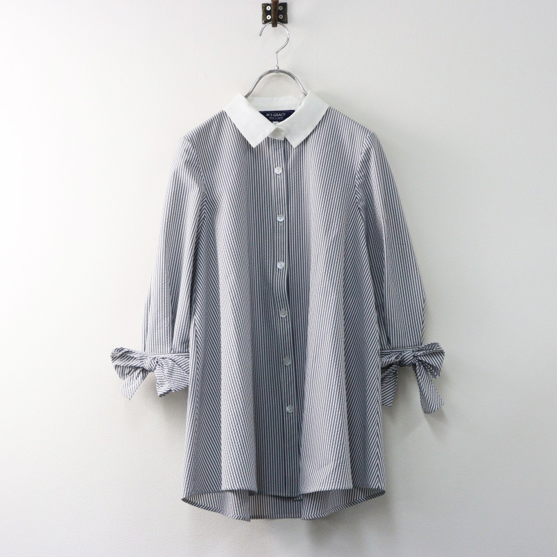 エムズグレイシー M’S GRACY 袖リボン ストライプブラウス