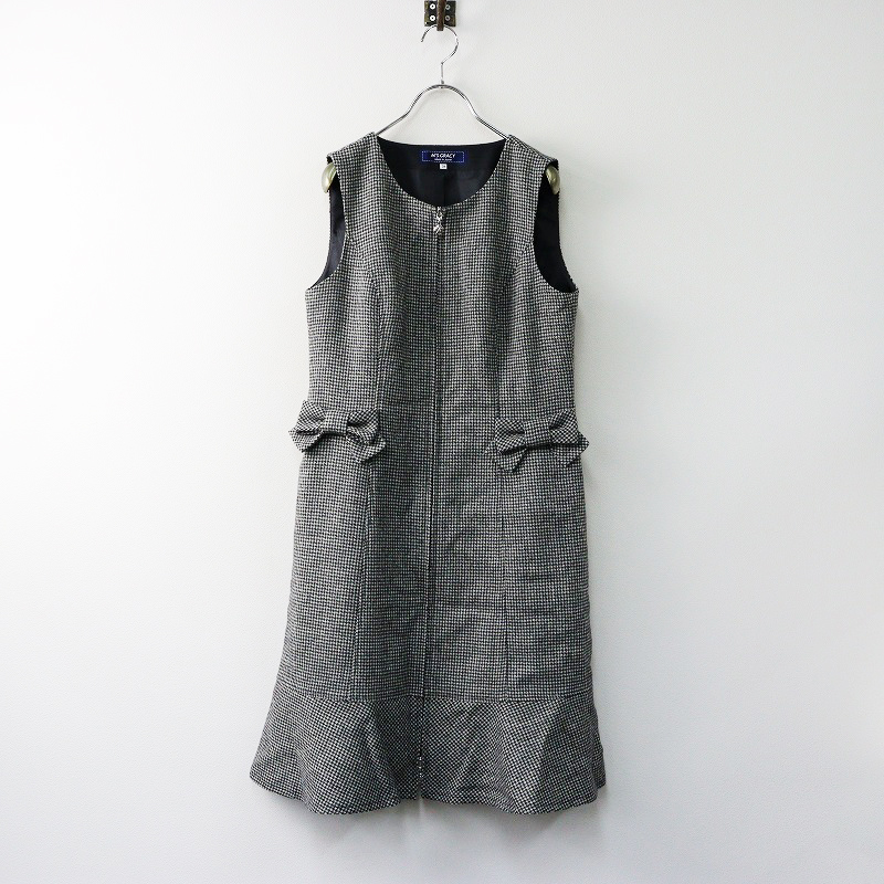 エムズグレイシー M’S GRACY ハウンドトゥースチェック リボン ジャンパースカート