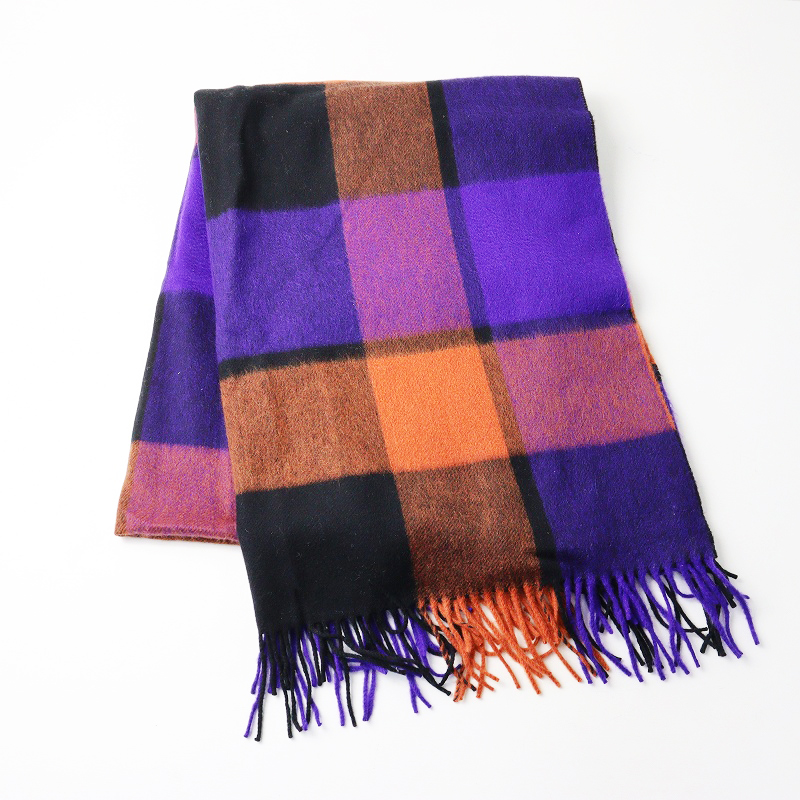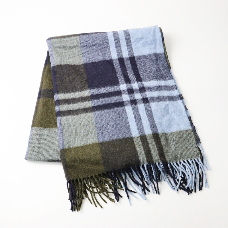 ジョシュアエリス Joshua Ellis カシミヤ フリンジ チェック 大判ストール