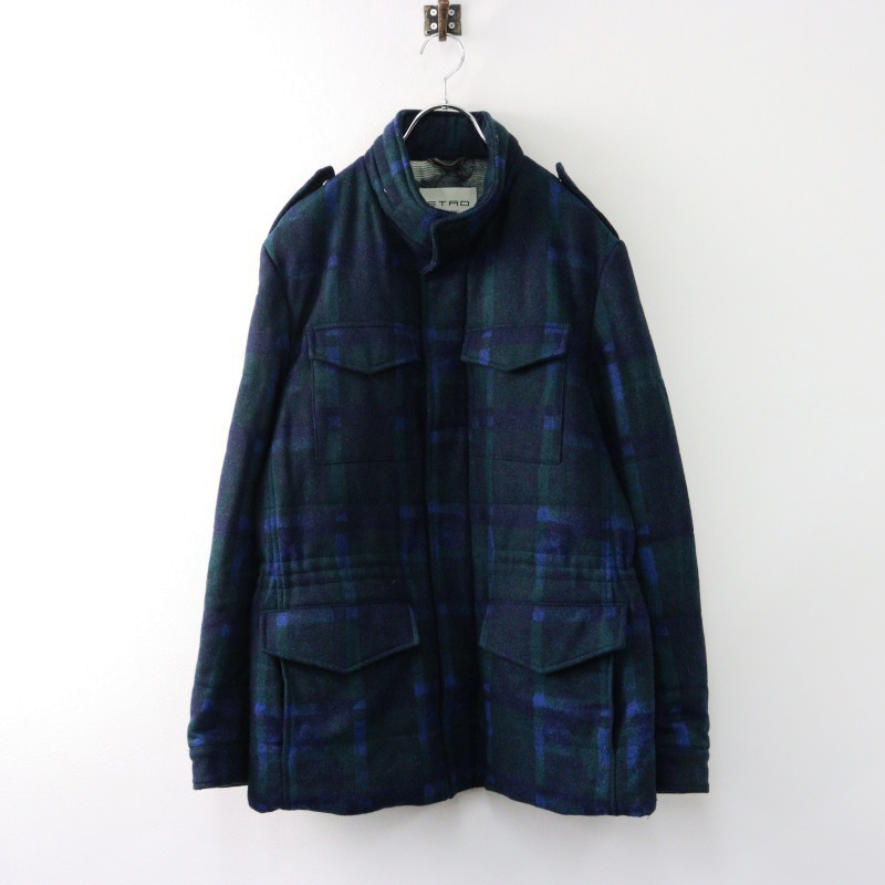 イタリア製 エトロ ETRO 裏地総柄 ウールメルトン チェック ジップアップブルゾン