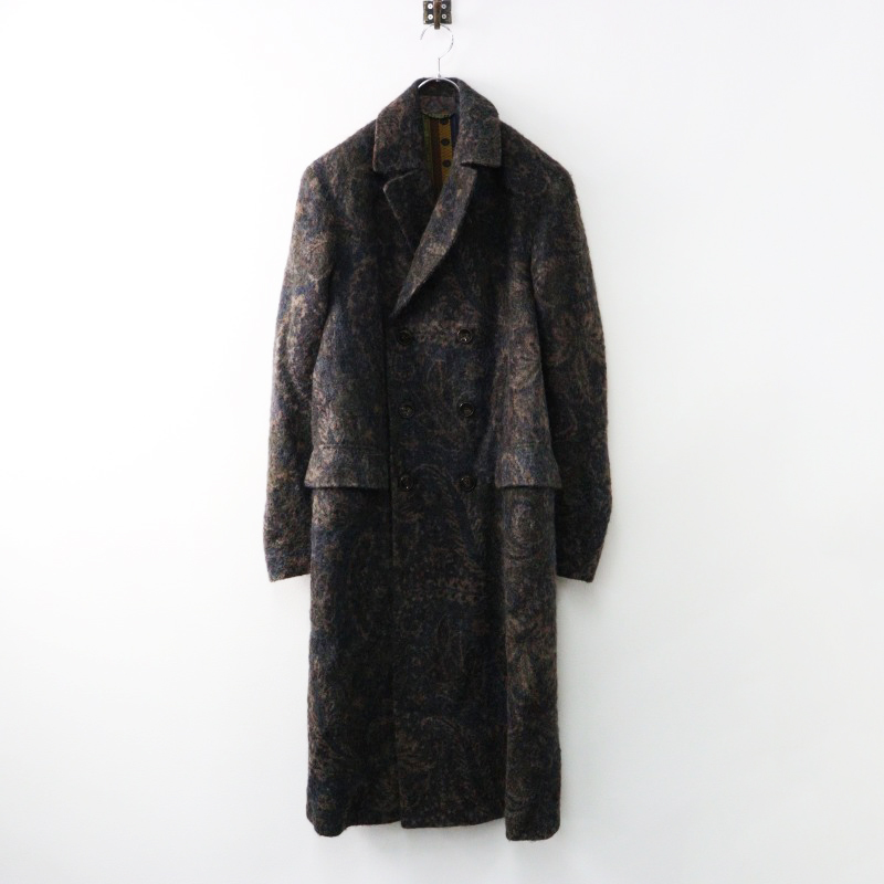 イタリア製 エトロ ETRO 裏地総柄 ペイズリープリント アルパカモヘヤ混 ダブルブレスト シャギーロングコート