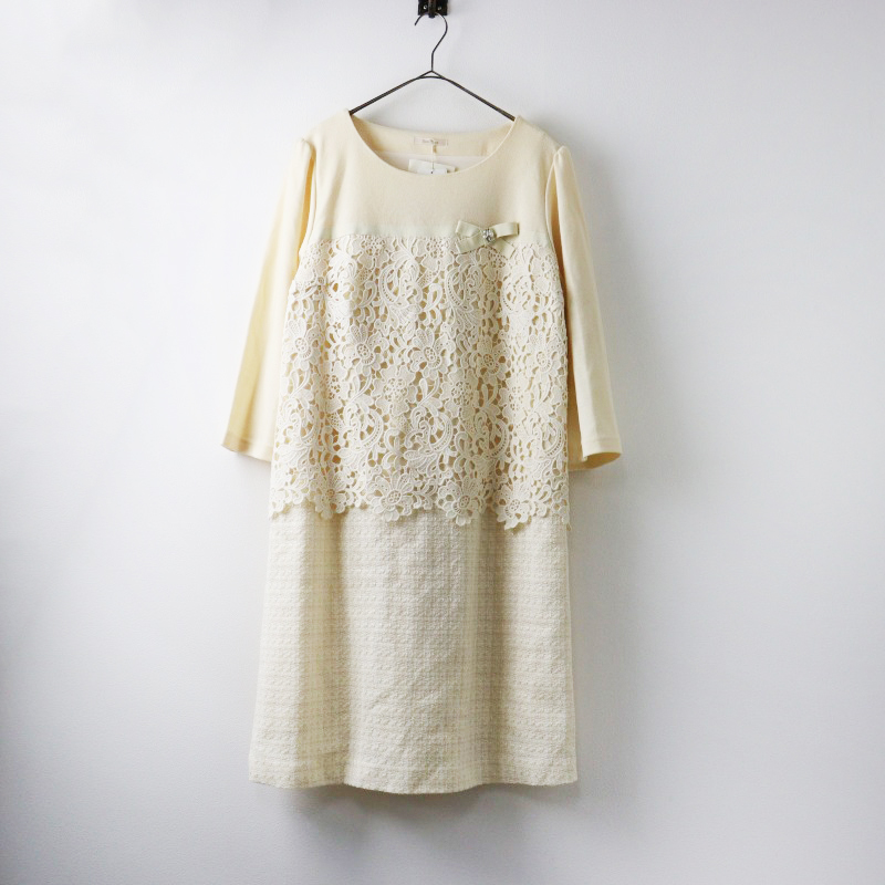 大きいサイズ ローズティアラ Rose Tiara ケミカルレース ツイード 切り替え ワンピース