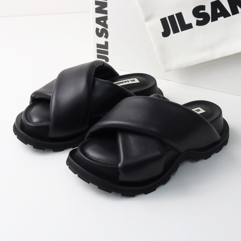 イタリア製 ジルサンダー JIL SANDER レザー クロスストラップ プラットフォームサンダル