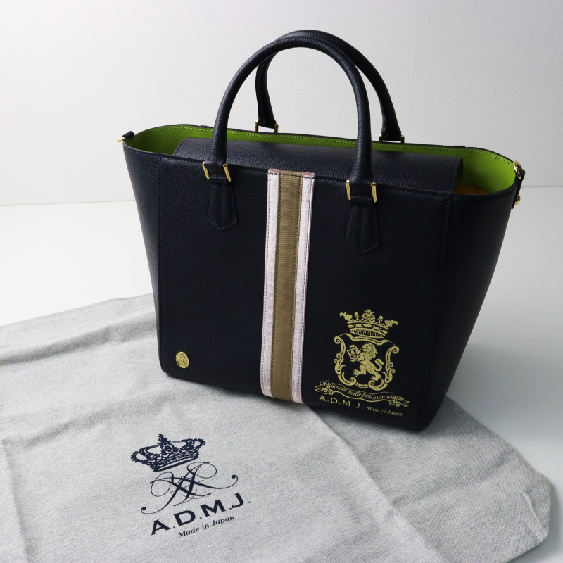 エーディーエムジェイ ADMJ 撥水イタリアンレザーセンターリボンモチーフトートバッグ