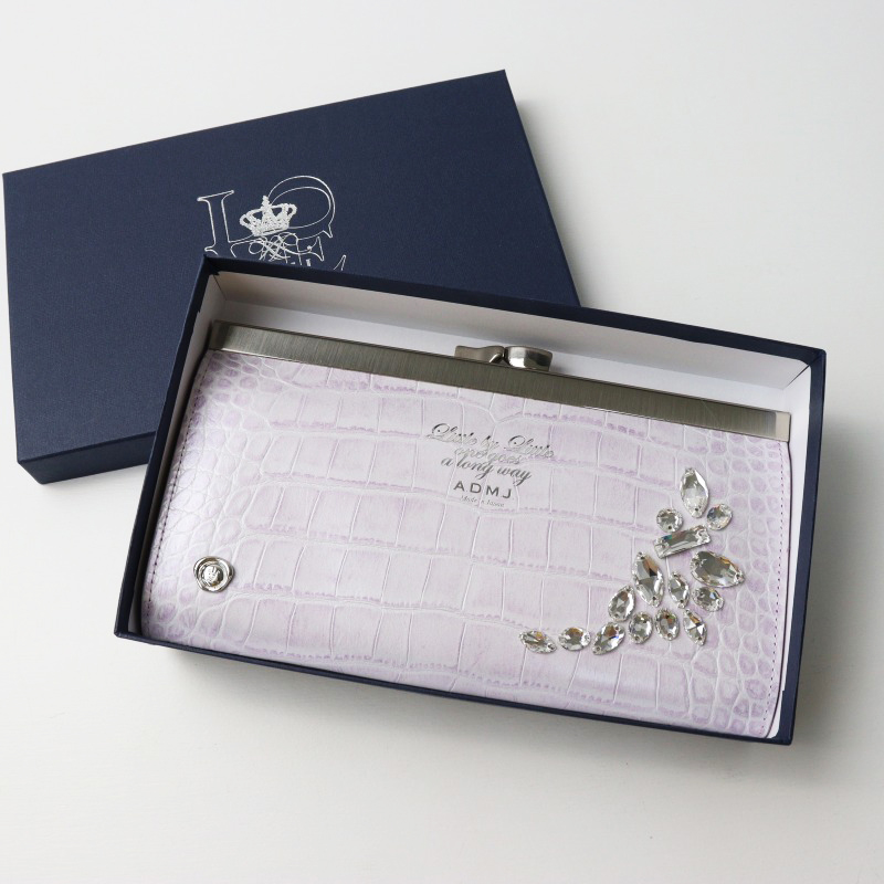 エーディーエムジェイ A.D.M.J. アクセソワ クロコダイル型押し スワロフスキー付き がま口ロングウォレット