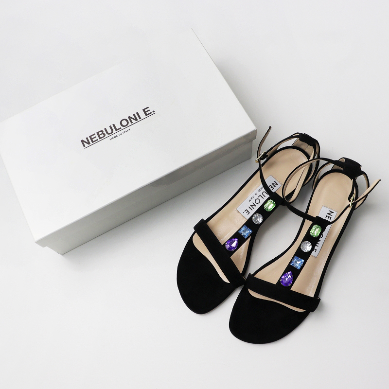 ネブローニ NEBULONI CAMOSCIO NERO ビジュー付き サンダル