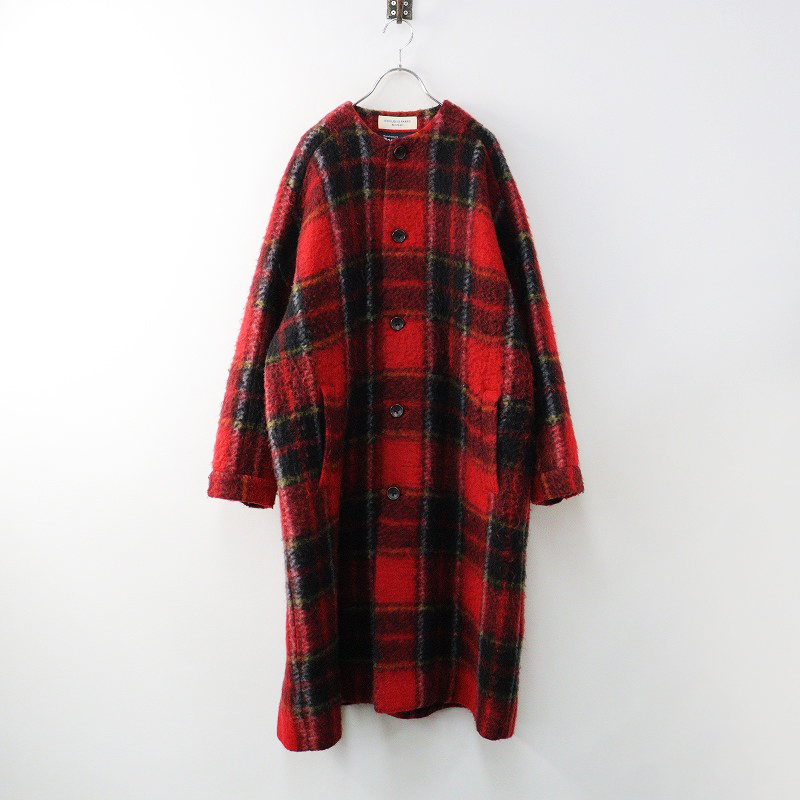 ビームスボーイ BEAMS BOY スライバー タータンチェック ノーカラー コート