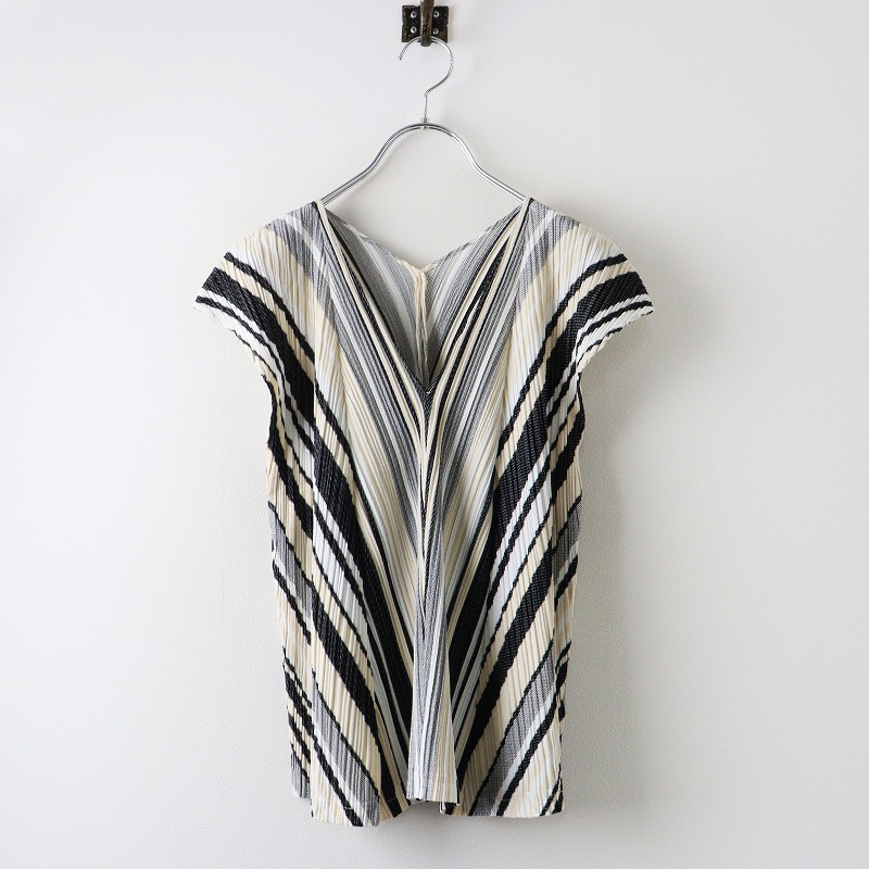 プリーツプリーズ イッセイミヤケ PLEATS PLEASE ISSEY MIYAKE ストライプ プリーツ ノースリーブ カットソー