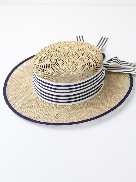 Chapeaud’O(シャポード オー):Dot Canotier オンライン限定 ストライプリボン カンカン帽