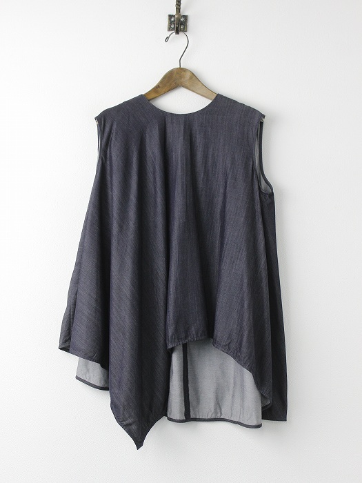 ENFOLD(エンフォルド):3009A 230-0120 デニム アシンメトリー ノースリーブ トップス