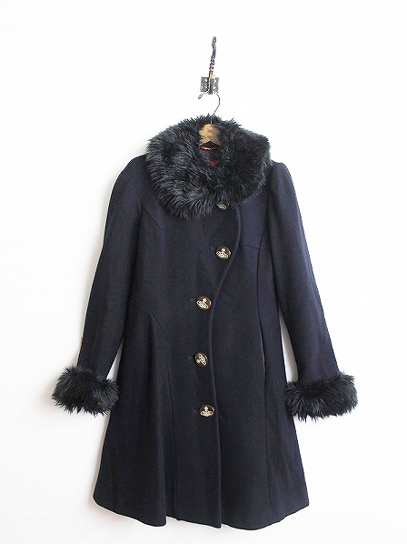 Vivienne Westwood red label(ヴィヴィアンウエストウッド レッドレーベル):ファー付き ウール ロングコート