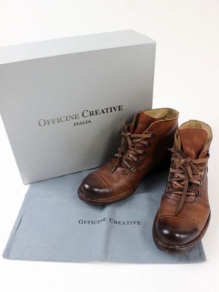 OFFICINE CREATIVE(オフィチーネクリエイティブ):アンティーク加工レザーレースアップブーツ