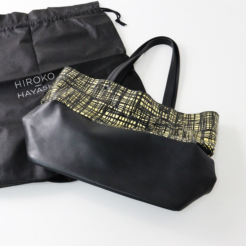 ヒロコハヤシ HIROKO HAYASHI 柄切替 レザートートバッグ
