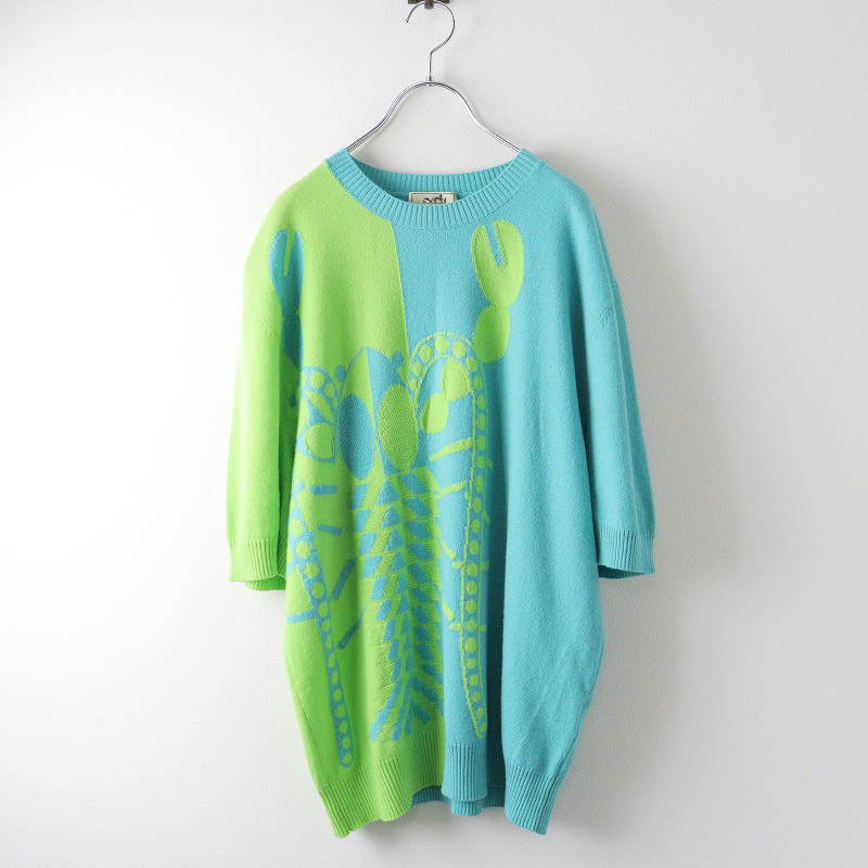 エルメス HERMES カシミヤ100% ロブスタージャガード ハーフスリーブニット