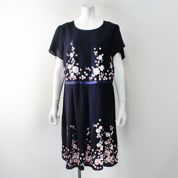 :Rose Tiara Jewel ローズティアラ ジュエル 吹き上げフラワー刺繍ジョーゼットワンピース