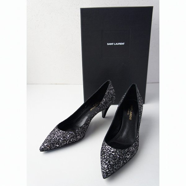 :SAINT LAURENT PARIS サンローランパリ グリッター ポインテッドトゥレザーヒールパンプス