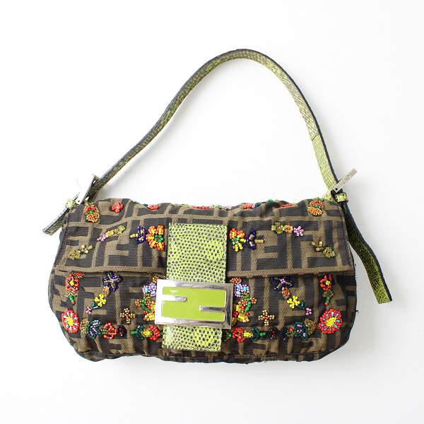 :FENDI フェンディ フラワービーズ装飾 ズッカ柄 マンマバケット ナイロンショルダーバッグ