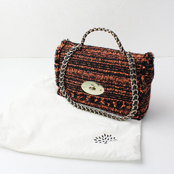 :MULBERRY マルベリー ターンロック開閉 ニットツイード チェーンハンドバッグ