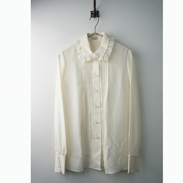 :SAINT LAURENT PARIS サンローラン パリ 319485 フリル襟 シルクジョーゼット 長袖シャツ