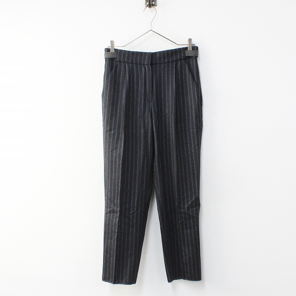 :BRUNELLO CUCINELLI ブルネロクチネリ ビーズ装飾 ストライプ タック入ウールテーパードパンツ