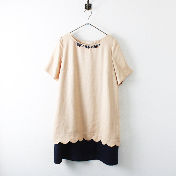 :Rose Tiara ローズティアラ ビジュー装飾 スカラップワンピース