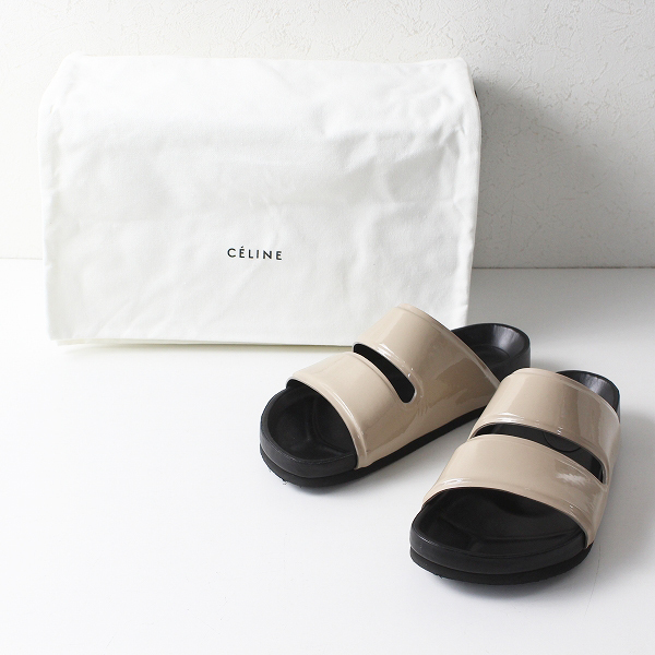 :CELINE セリーヌ double band sandal パテントレザー ダブルバンド フラットサンダル