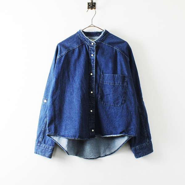 :2021コレクション BLANC basque BB88-105 パールボタンダンガリーバンドカラーロングスリーブデニムシャツ