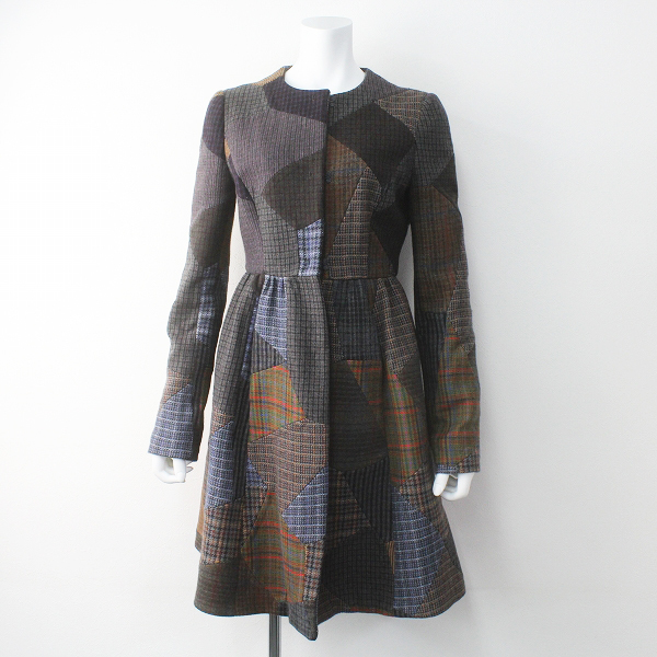 :miumiu ミュウミュウ チェック パッチワーク ギャザー ノーカラーコート