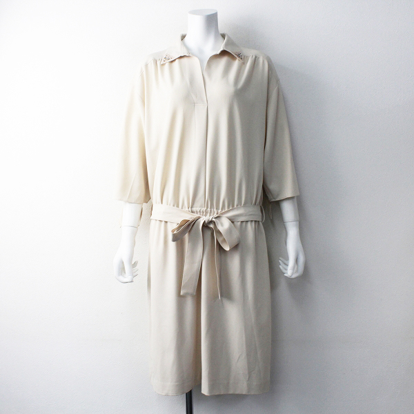 :Rose Tiara ローズティアラ ストーン装飾 ベルト付き ストレッチ ワンピース
