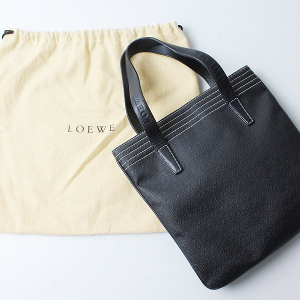 :LOEWE ロエベ アナグラム 型押し PVC × レザー ミニ トートバッグ