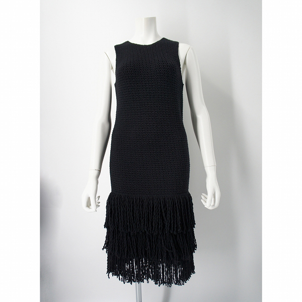 :CELINE セリーヌ ウール フリンジティアードフリル ニット ノースリーブロングワンピース