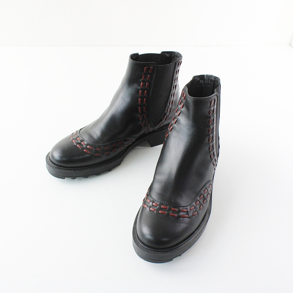 :TOD’S トッズ ステッチデザイン レザーサイドゴア ショートブーツ