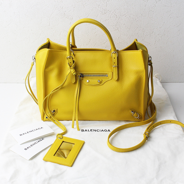 :BALENCIAGA バレンシアガ 370926 DLQON ペーパーミニ ジップアラウンド レザー 2WAY トートバッグ