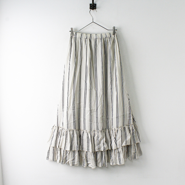 :2019SS IENA LA BOUCLE イエナ ラブークル コットンシルク混 ドビーストライプ裾フリルスカート