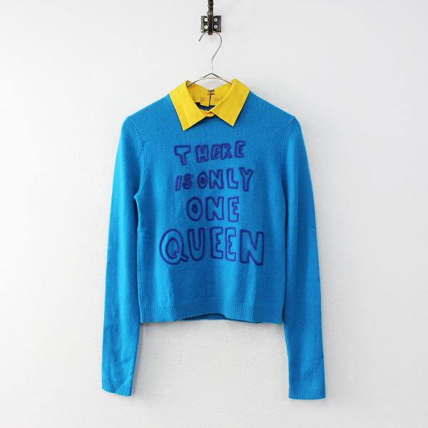 :alice+olivia アリスオリビア カシミヤ100% フロント刺繍 着脱 襟付き ニットプルオーバー