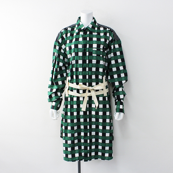 :2020SS PLAN C プランシー DRESS LS POPELINE CHECKERS GREEN CHECK WHITE BASE ワンピース